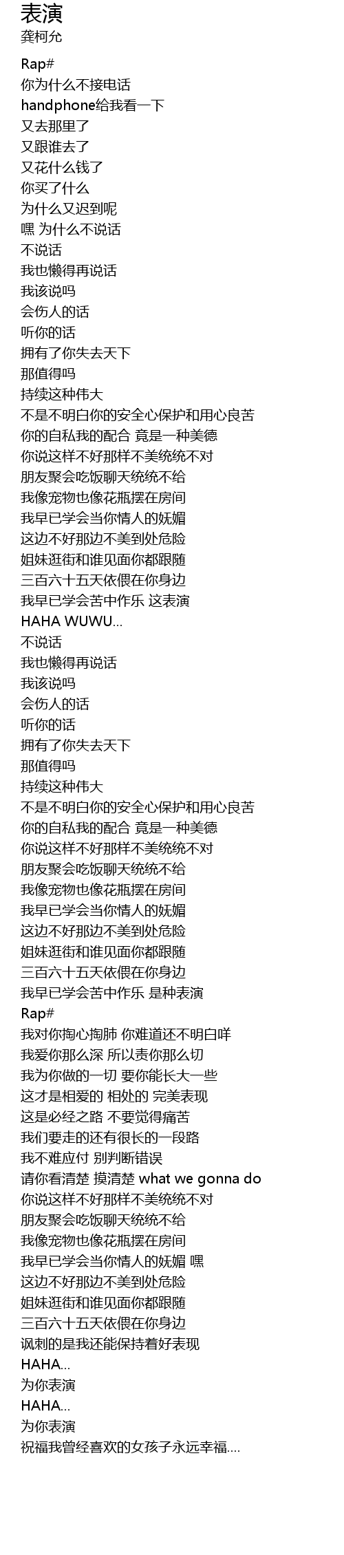 | [02:52.57] | wǒ zǎo yǐ xué huì kǔ zhōng zuò yuè shì zhǒng biǎo yǎn |