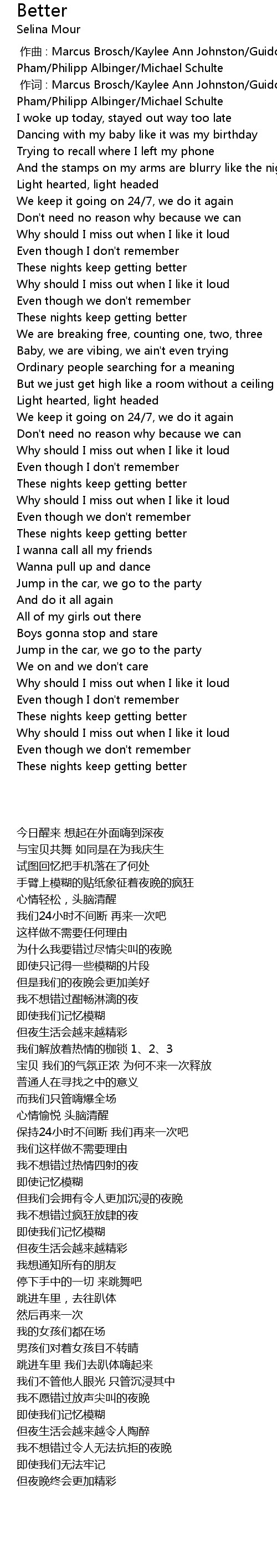 | [00:49.34] | These nights keep getting better |