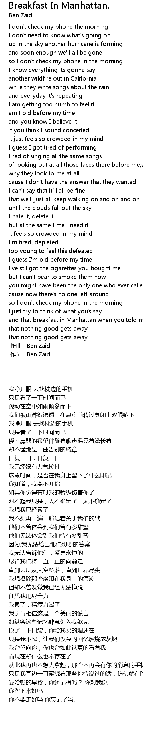 | [00:00.000] | 作词 : Ben Zaidi |