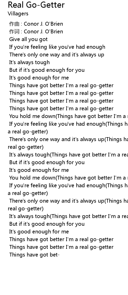 | [01:12.483] | Things have got better I' m a real gogetter |