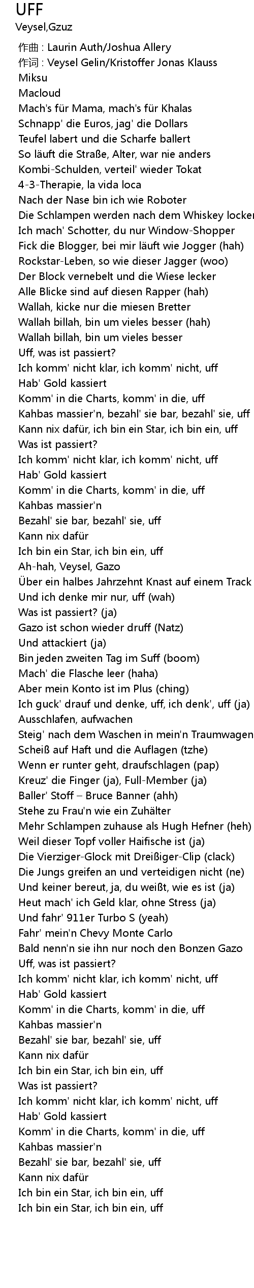 | [01:19.212] | Ich guck' drauf und denke, uff, ich denk', uff (ja) |