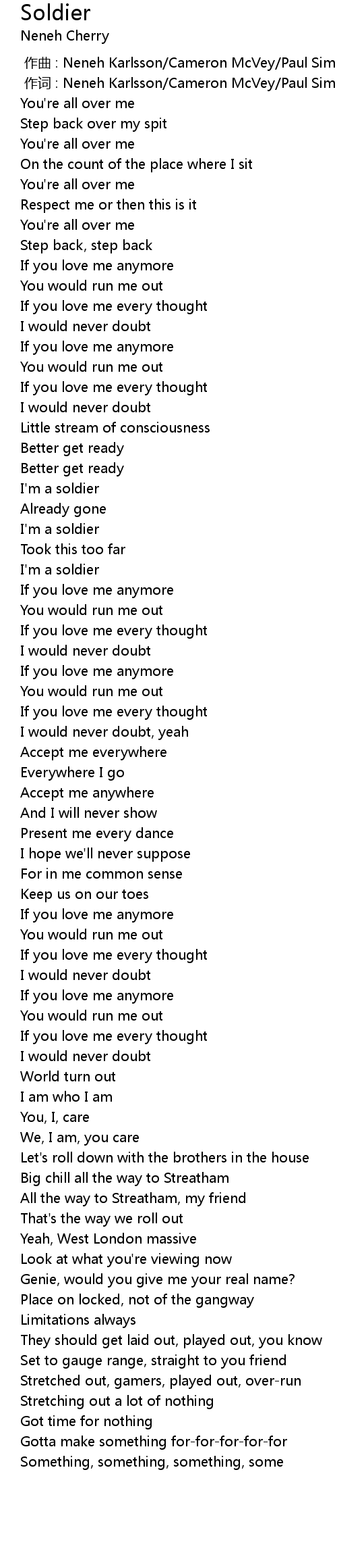 | [00:01.000] | 作词 : Neneh Karlsson/Cameron McVey/Paul Simm/Kieran Hebden |