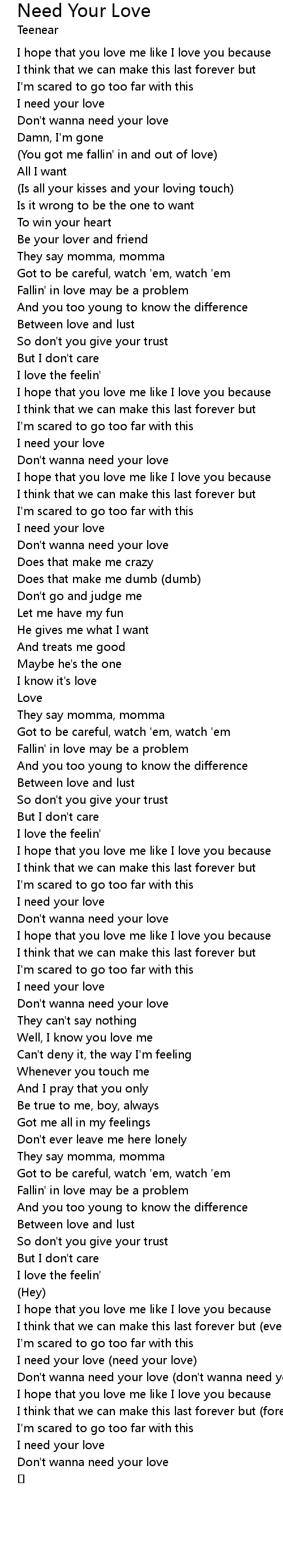 | [02:31.98] | Don' t wanna need your love don' t wanna need your love, babe |