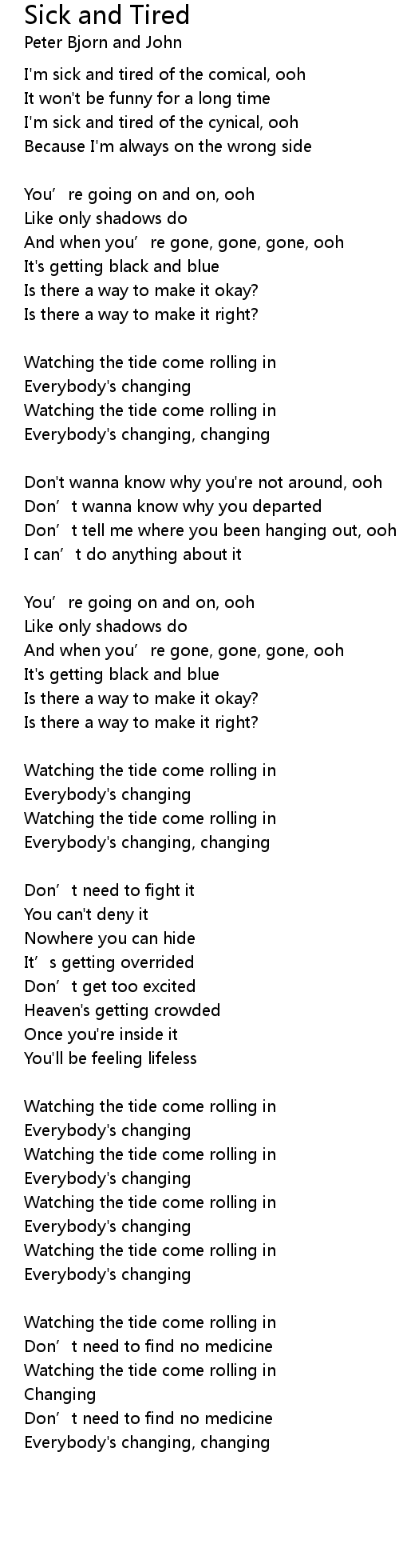 | Song | Sick and Tired |