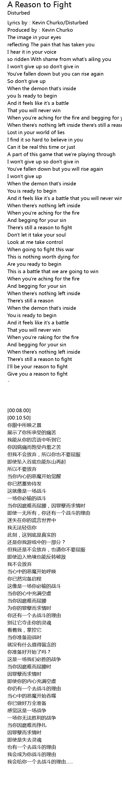 | [00:08.00] | Lyrics by:Kevin Churko/Disturbed |