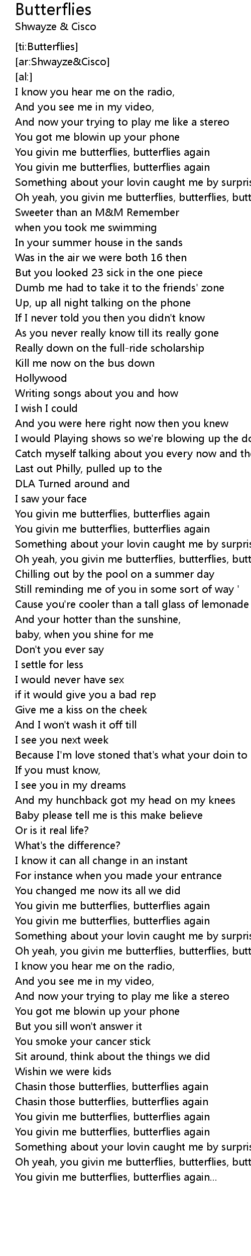 Oh yeah, you givin me butterflies, butterflies, butterflies again |