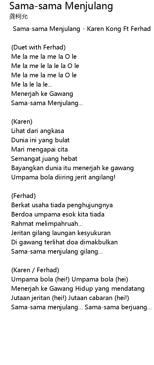| Sama-sama Menjulang - Karen Kong Ft Ferhad | |