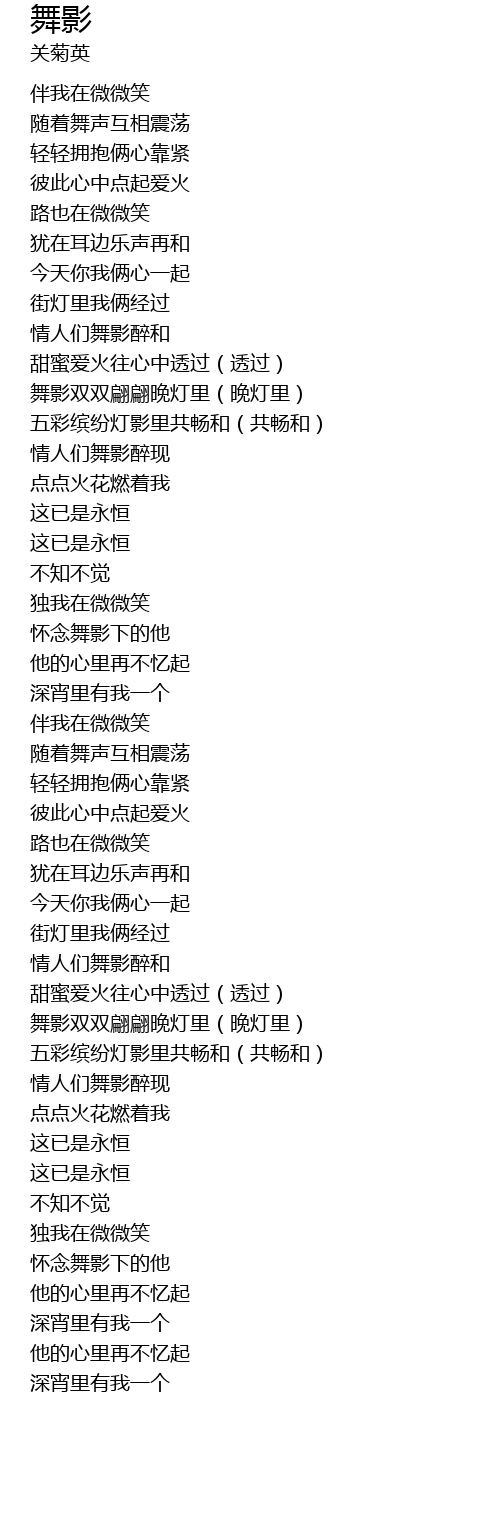 | [01:05.58] | 舞影双双翩翩晚灯里(晚灯里) |