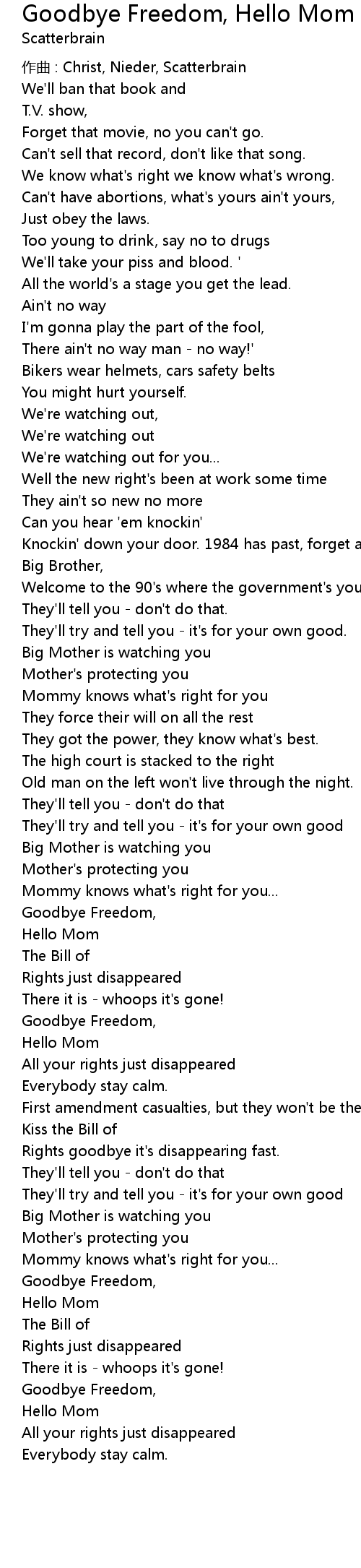 | Song | Goodbye Freedom, Hello Mom |