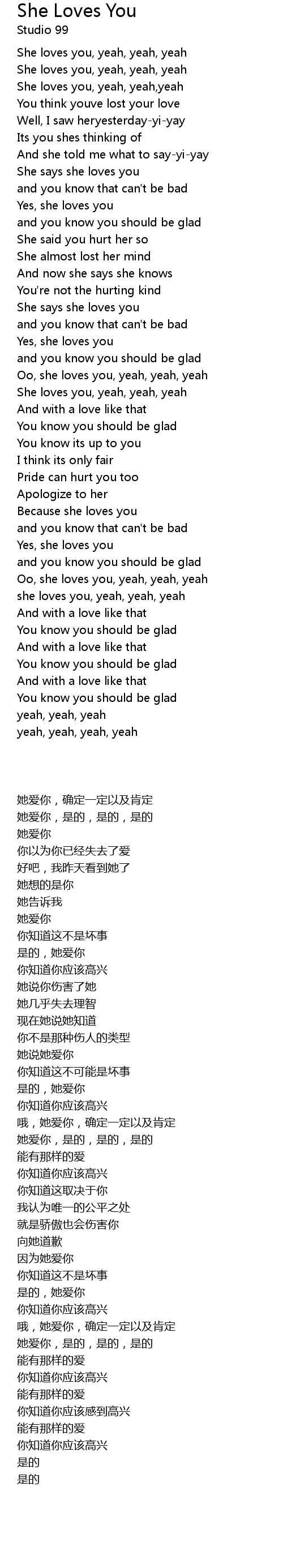 She loves you, yeah, yeah,yeah |