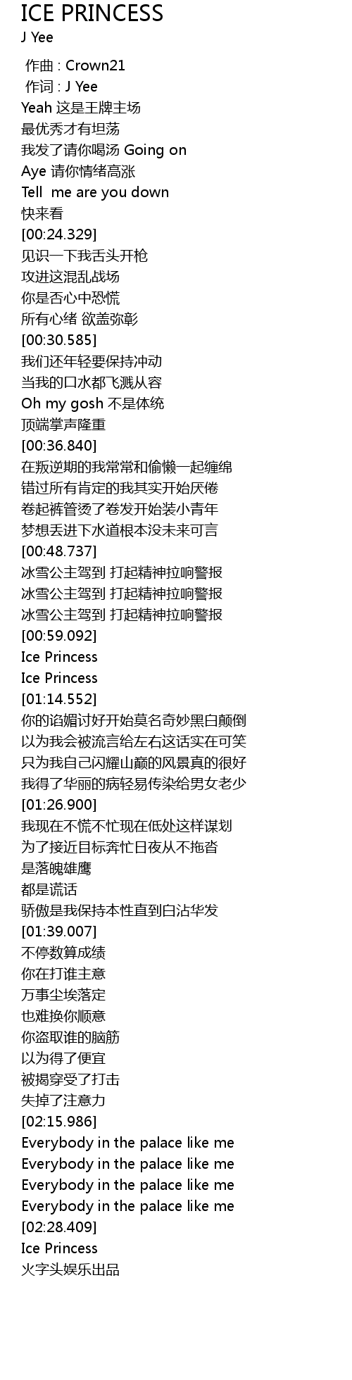 | [00:56.451] | 冰雪公主驾到 打起精神拉响警报 |