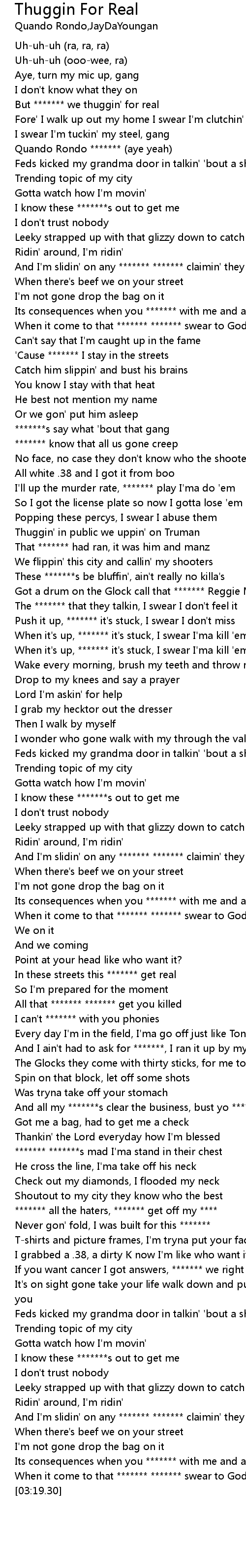 But ******* we thuggin' for real |