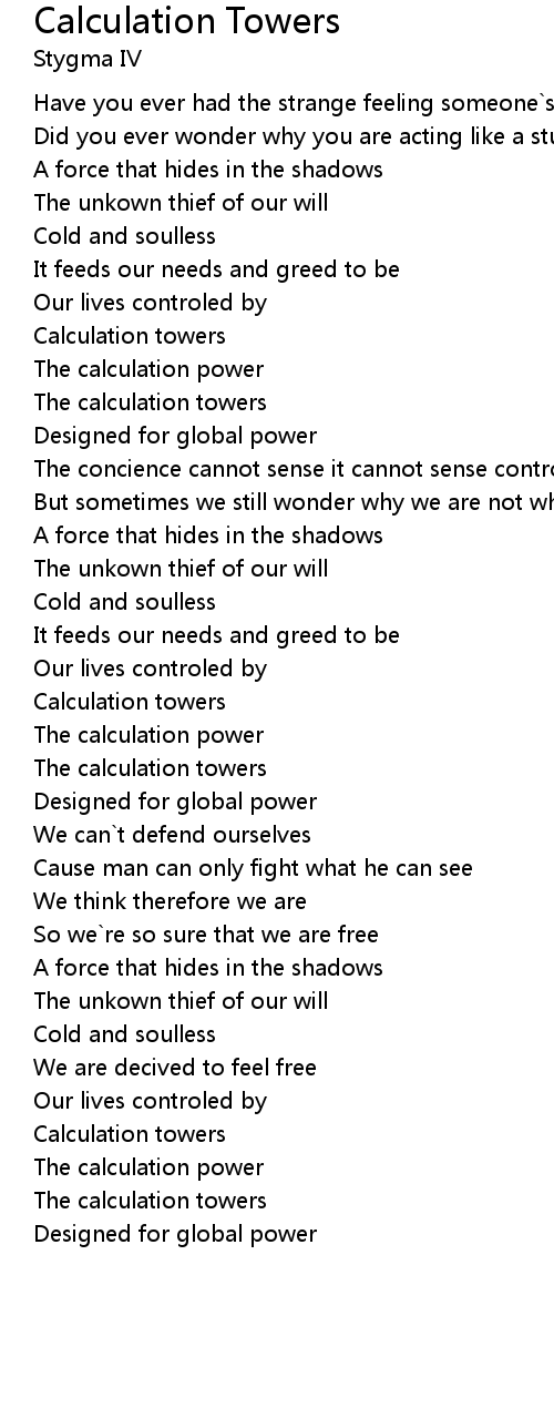 Calculation Towers Lyrics