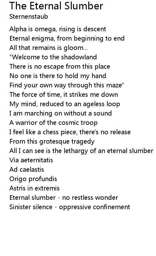 All I can see is the lethargy of an eternal slumber |