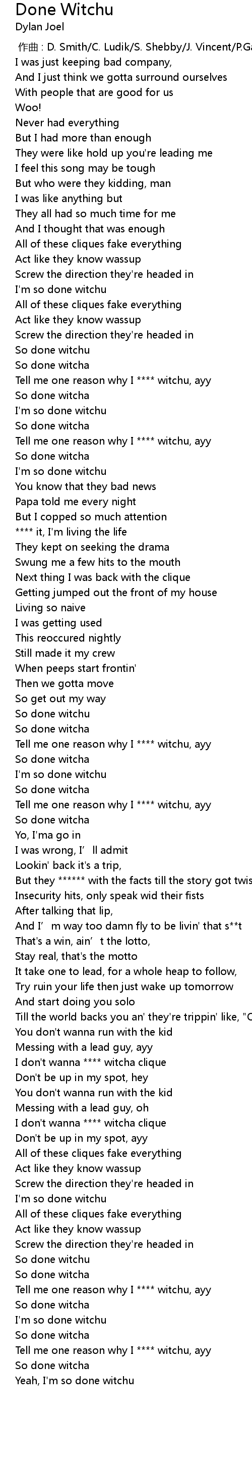 | [00:53.48] | So done witcha |