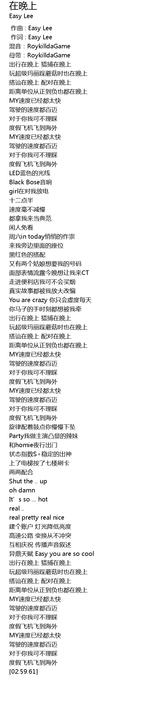 | [02:39.96] | 搭讪在晚上 配对在晚上 |