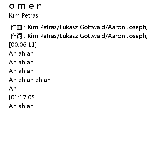 | [00:01.000] | zuo ci : Kim Petras Lukasz Gottwald Aaron Joseph Vaughn Oliver |