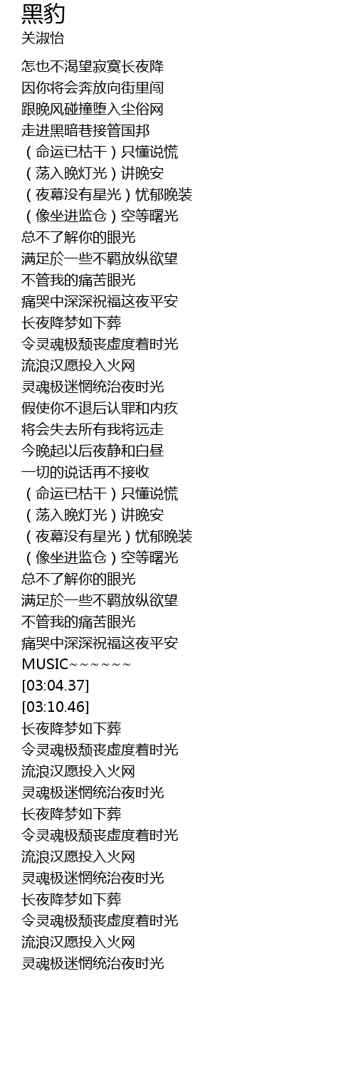 | [03:44.11] | 灵魂极迷惘统治夜时光 |