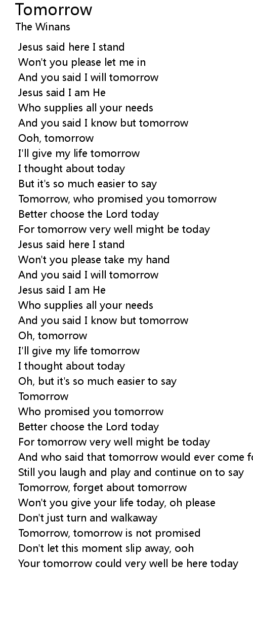 Tomorrow, tomorrow is not promised |