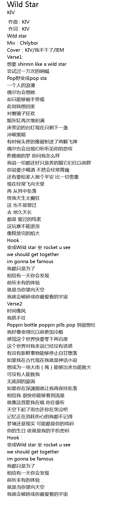 | [02:18.28] | 变成Wild star 坐 rocket u see |