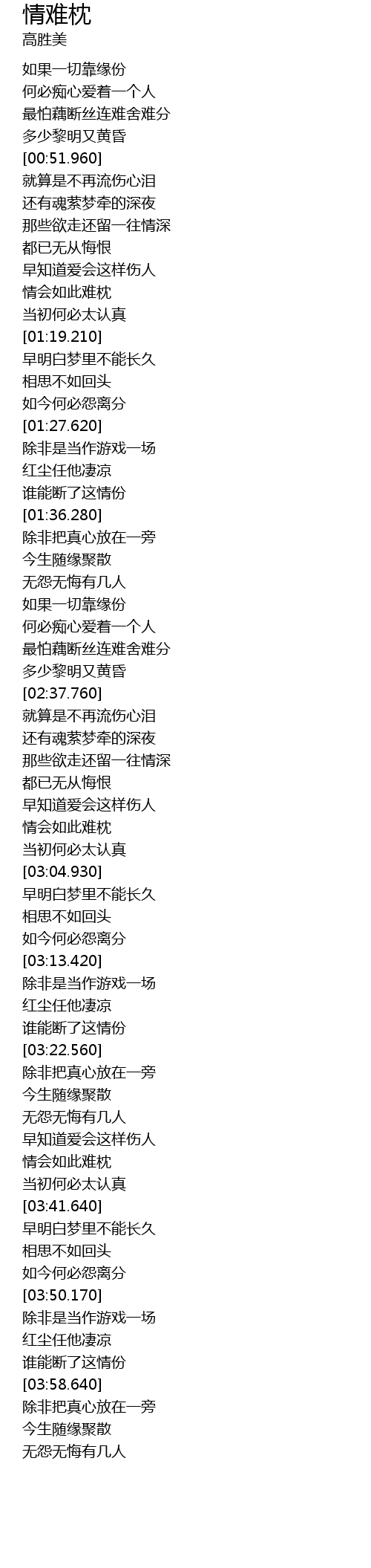 | [02:59.810] | 情会如此难枕 |