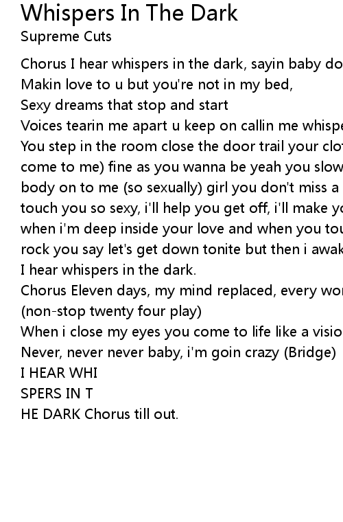 Voices tearin me apart u keep on callin me whispers in the dark |