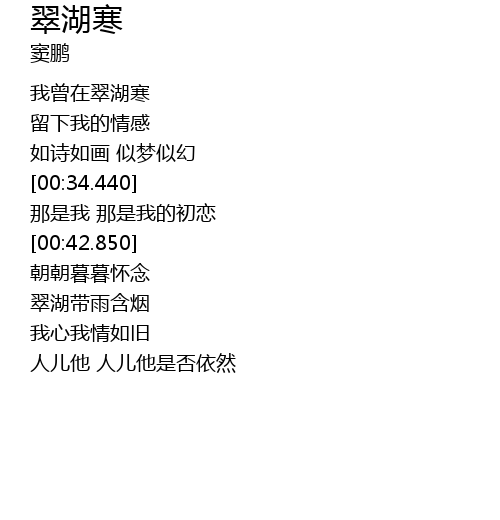 | [00:09.910] | wǒ céng zài cuì hú hán |