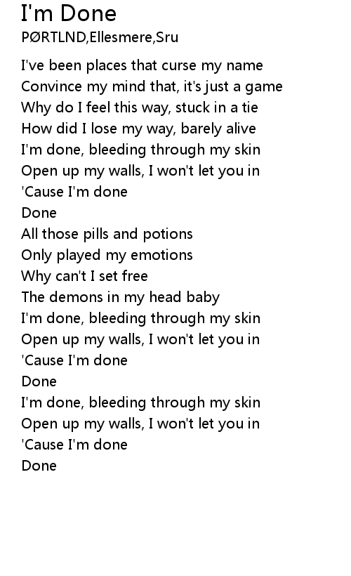 | [02:09.762] | I'm done, bleeding through my skin |