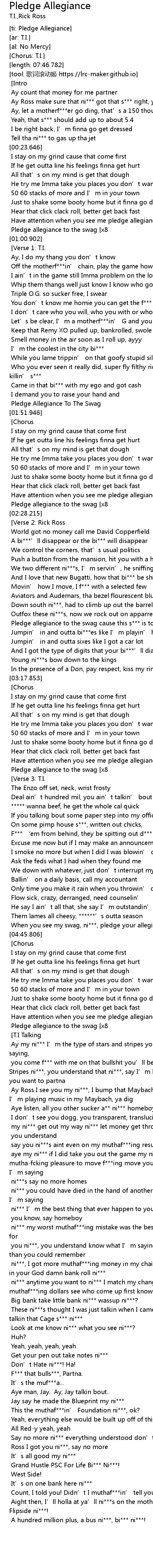 | [00:06.996] | Ay Ross make sure that ni*** got that s*** right, ya hear me? |
