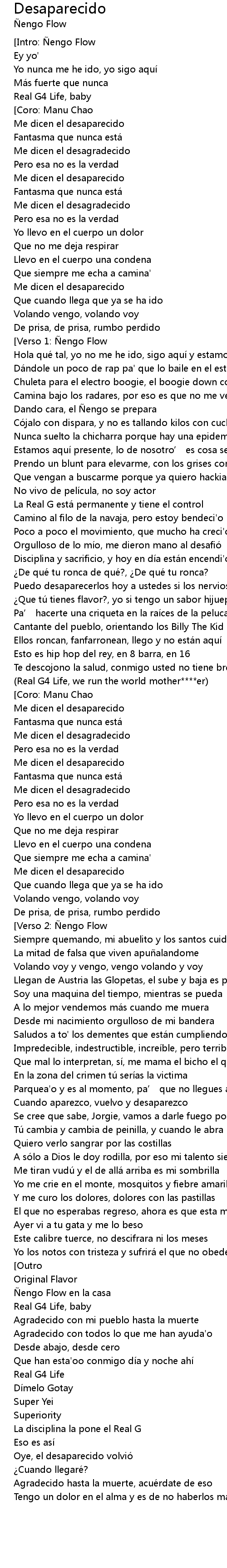 | [02:23.978] | Me dicen el desaparecido |