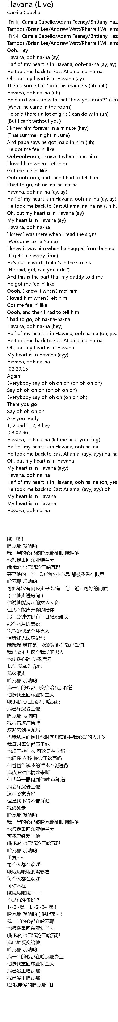 | [03:23.47] | Havana, ooh nana let me hear you sing |