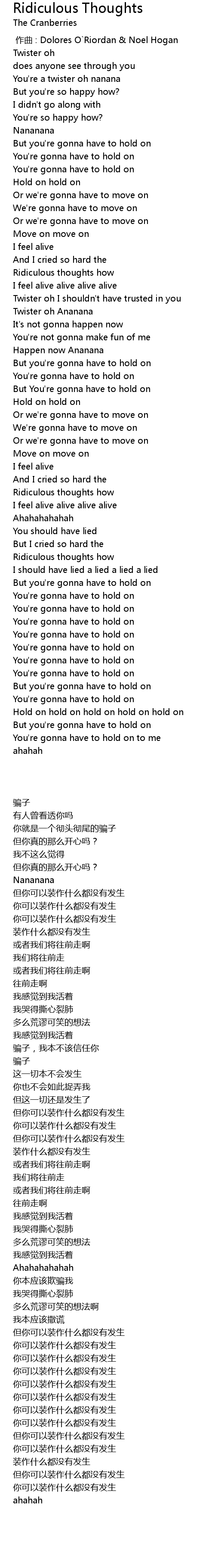 | [00:00.00] | 作曲 : Dolores O`Riordan & Noel Hogan |