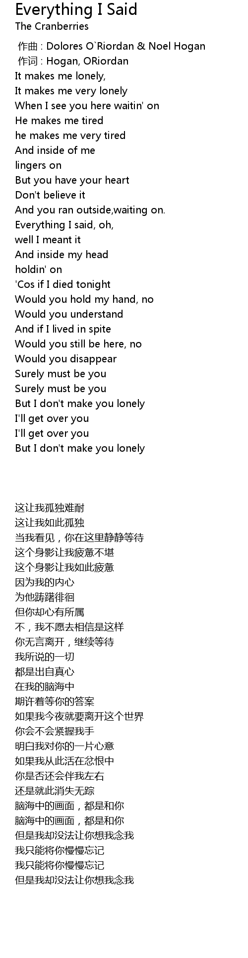 | [00:00.00] | 作曲 : Dolores O`Riordan & Noel Hogan |