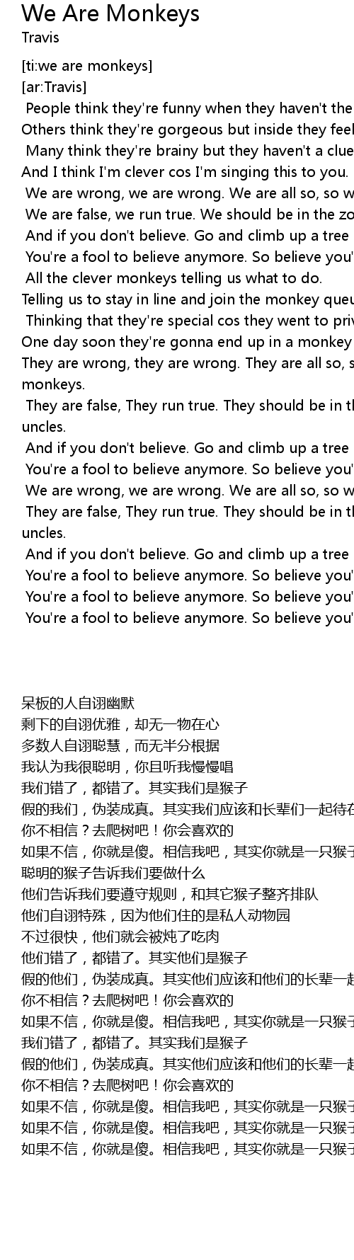 | [00:30.00] | We are wrong, we are wrong. We are all so, so wrong. We are monkeys |