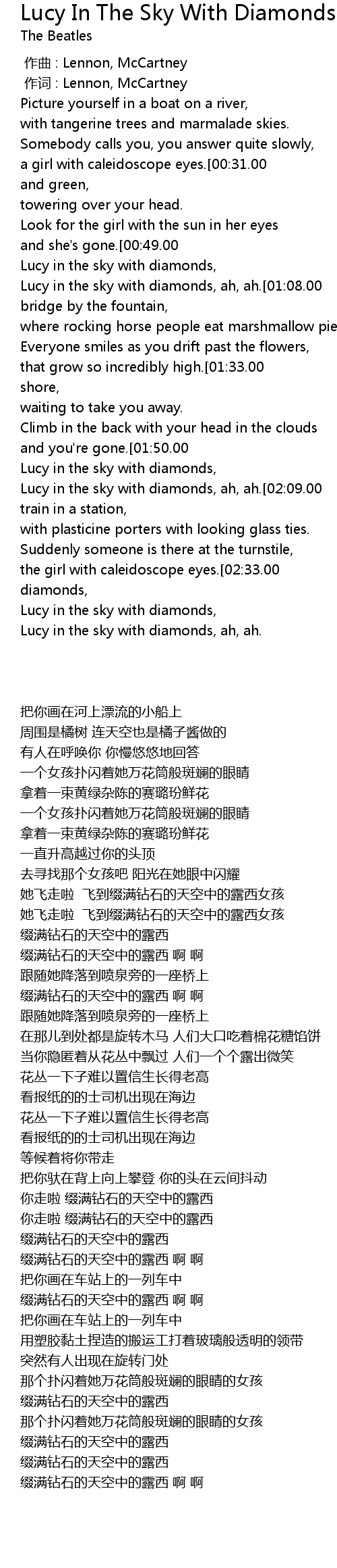 | [02:43.00] | Lucy in the sky with diamonds, ah, ah. |