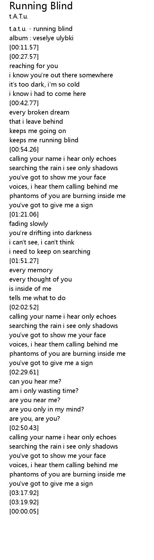 | [00:01.57] | t.a.t.u. - running blind |
