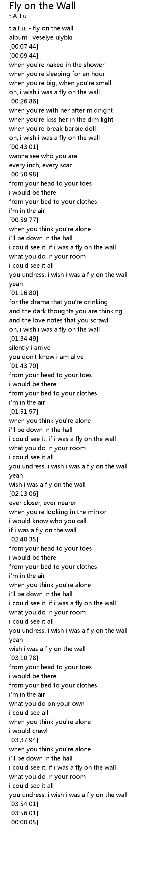 | [00:01.44] | t. a. t. u. fly on the wall |