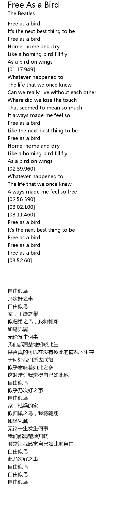 | [03:32.60] | Free as a bird |