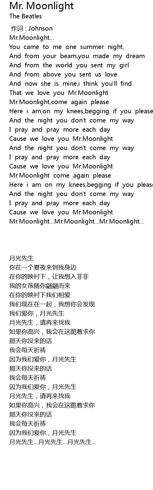| [02:25.65] | Mr. Moonlight... Mr. Moonlight... Mr. Moonlight... |