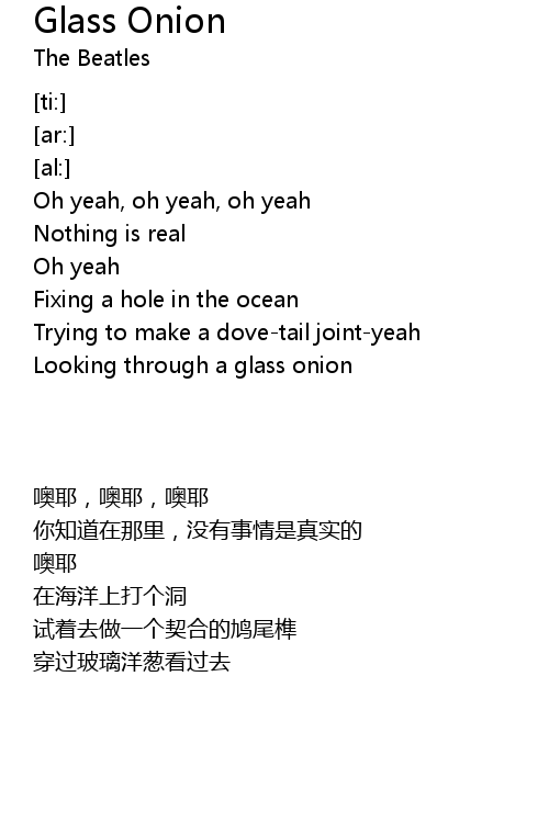 | [00:40.11] | Looking through a glass onion |