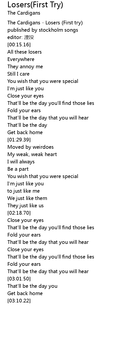| [00:00.00] | The Cardigans Losers First try |