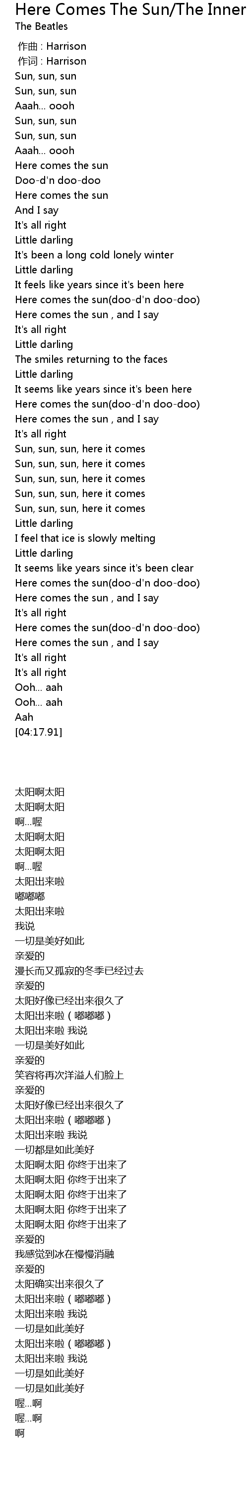 | [03:25.94] | Here comes the sun(doo-d'n doo-doo) |
