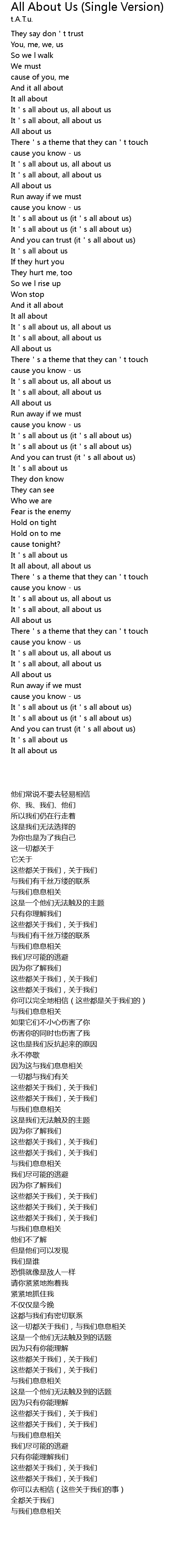 | [00:40.360] | All about us |