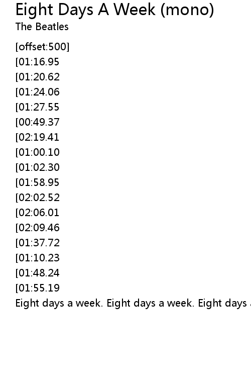 Eight days a week. Eight days a week. Eight days a week. |