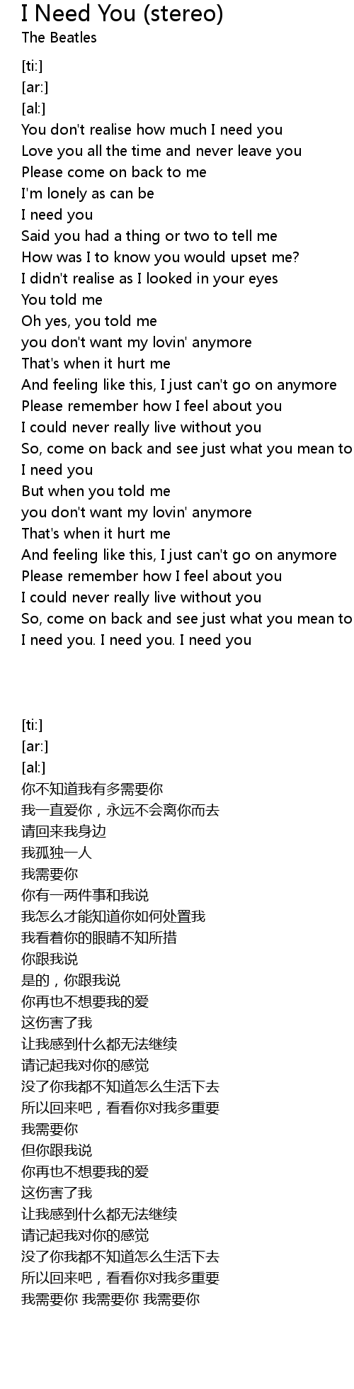 I need you. I need you. I need you |
