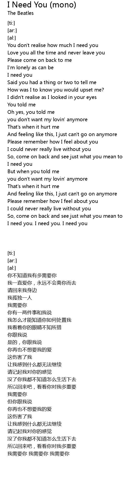 I need you. I need you. I need you |