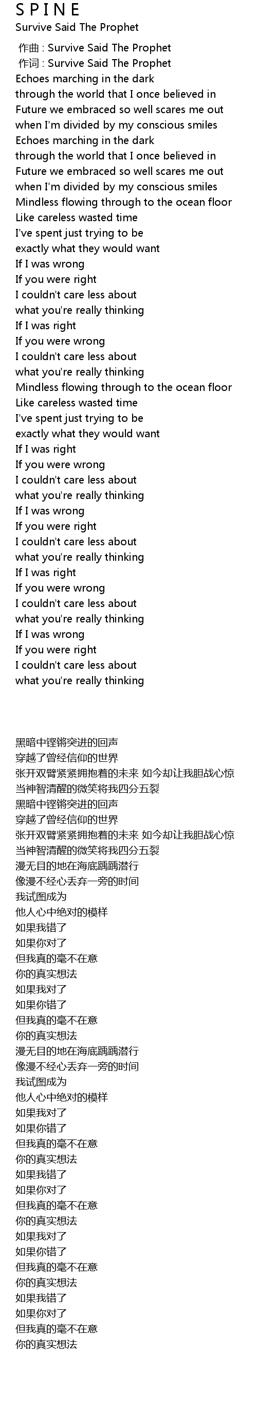 | [00:00.030] | zuò cí : Survive Said The Prophet |