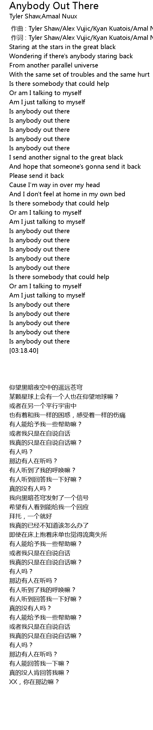 | [00:01.000] | zuò cí : Tyler Shaw Alex Vujic Kyan Kuatois Amal Nooh |