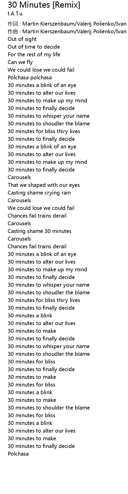 | 作词 : Martin Kierszenbaum/Valerij Polienko/Ivan Shapovalov/Sergej Galojan | |