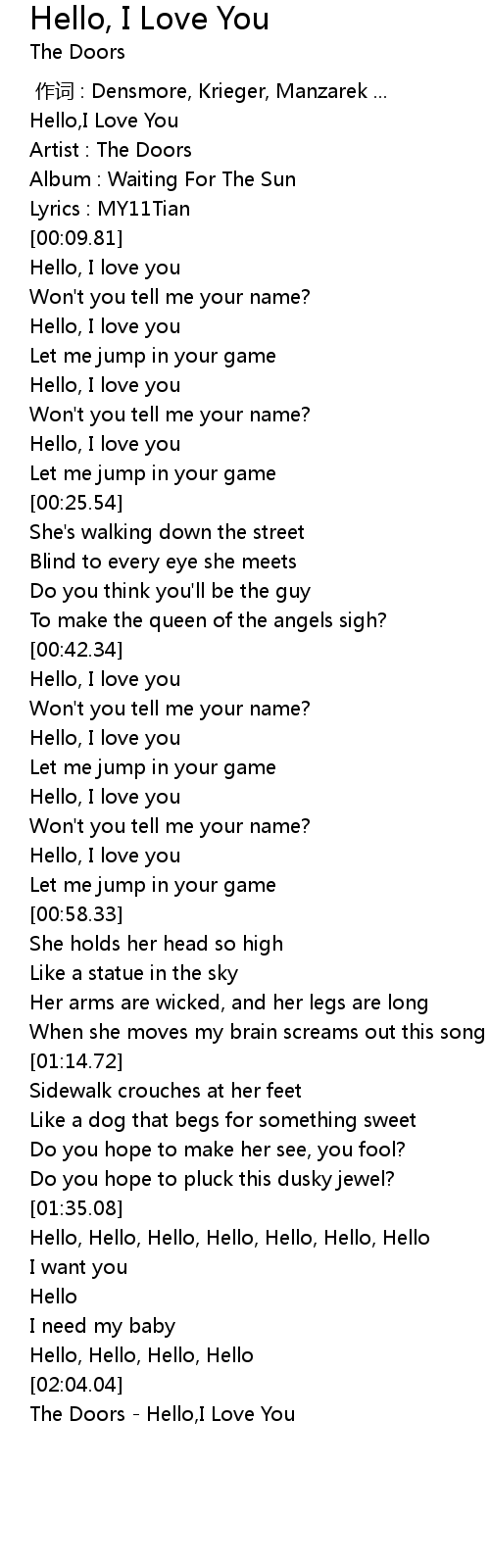 | [02:06.71] | The Doors Hello, I Love You |